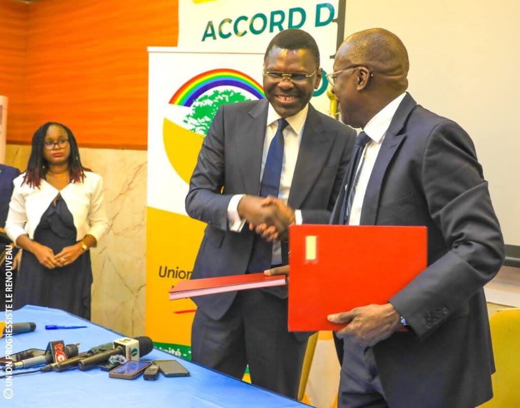 Bénin Royal Hôtel de Cotonou a servi de cadre, ce mardi 16 septembre 2025, à une grande activité qui redessine la vie politique nationale. L’Union Progressiste le Renouveau, conduite par son Président Joseph Fifamin DJOGBÉNOU, et le Bloc Républicain, avec à sa tête le Président Abdoulaye Bio TCHANÉ, ont procédé à la signature d’un protocole d’entente qui insuffle un souffle nouveau au processus de consolidation du système partisan et de renforcement de l’unité de la mouvance présidentielle.