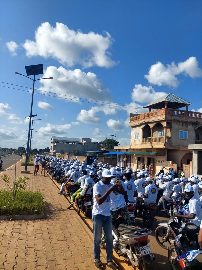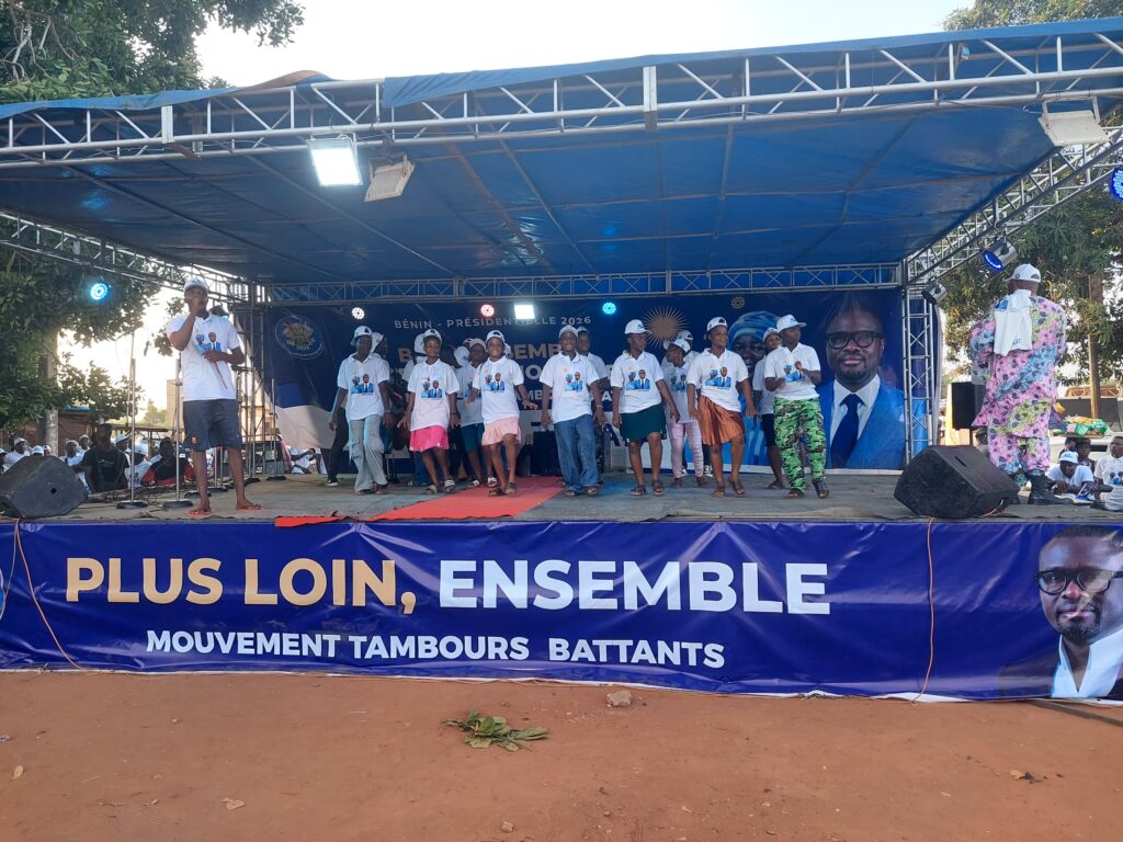 Abhorrés de tee-shirt et de casquette à l’effigie de leur duo de candidats, plus de deux mille personnes ont parcouru les rues de Avrankou et Adjarra pour afficher leur soutien indéfectible à Romuald WADAGNI et rallier hommes, femmes et primo-votants à leur juste cause. Devant la mairie de la Commune d’Adjarra, à travers un géant concert, les tambours ont raisonné dans une diversité de sonorités pour porter loin le message des initiateurs du mouvement »Tambours battants pour WADAGNI ».