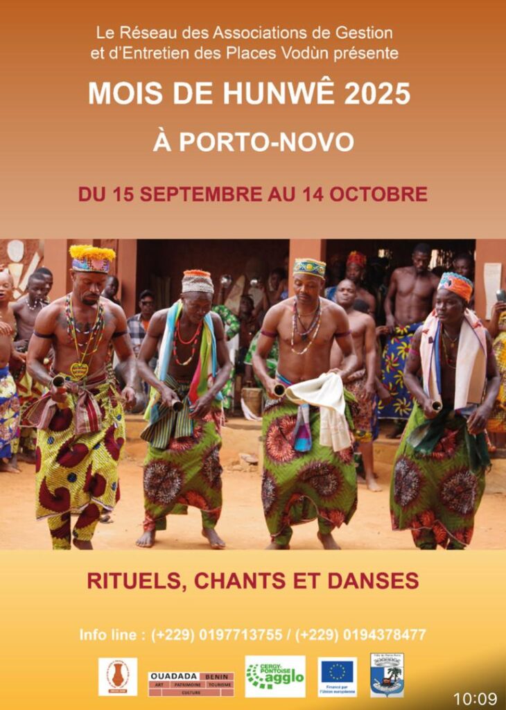 L’invitation est lancée : du 15 septembre au 14 octobre 2025, venez vivre une expérience authentique au cœur des places vodùn de Porto-Novo. C’est une opportunité rare de toucher du doigt la force spirituelle et culturelle qui anime le peuple béninois depuis des siècles.Le HUNWÊ 2025 promet d’être un rendez-vous incontournable pour tous ceux qui s’intéressent au patrimoine africain et à sa transmission vers les générations futures.