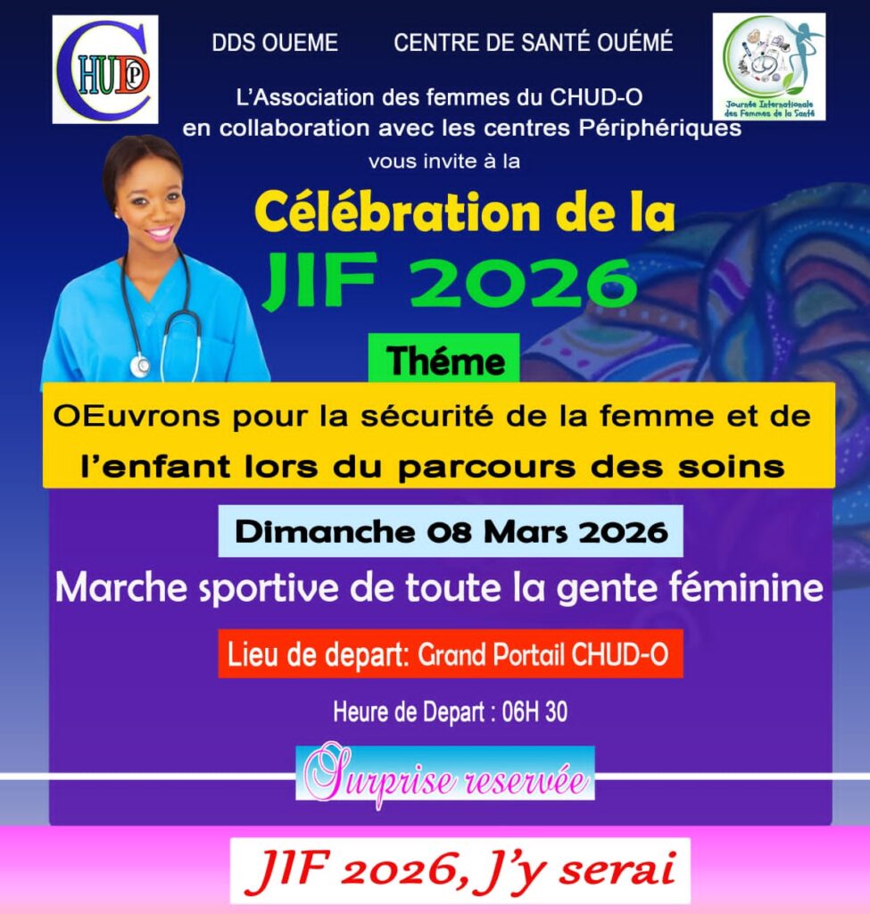Le Centre Hospitalier Universitaire Départemental de l’Ouémé (CHUD-O) s’apprête à célébrer, ce dimanche 8 mars, la Journée internationale des droits de la femme (JIF), édition 2026. À travers une série d’activités mobilisatrices, l’établissement entend mettre en lumière la place essentielle de la femme dans le système de santé et renforcer la sensibilisation autour de la sécurité des soins.